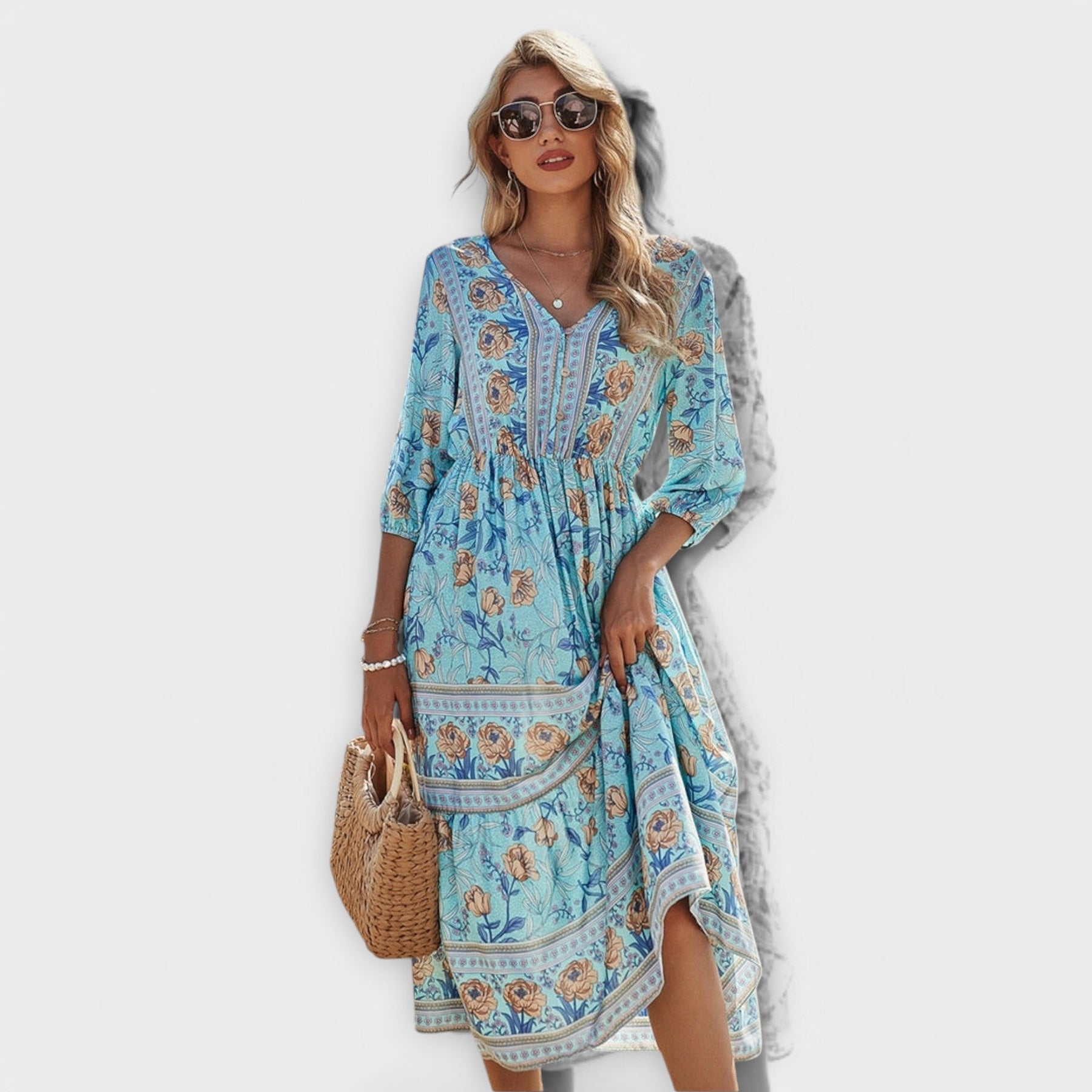 Discover the timeless allure of our elegant dress, designed to elevate your wardrobe with its sophisticated floral print.