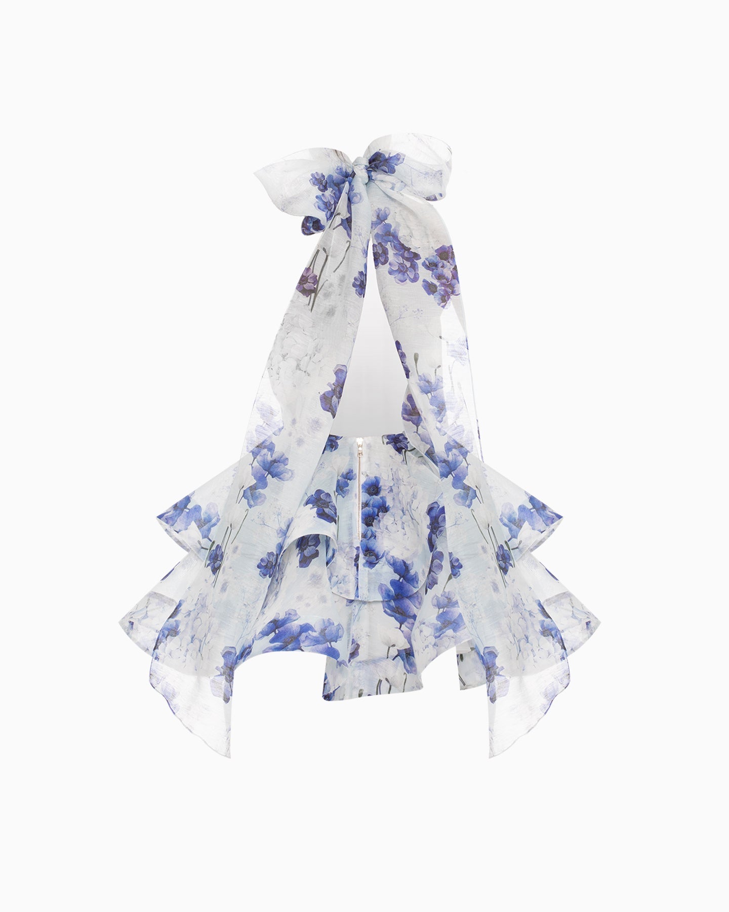 Crafted with a sculpted halter neckline and an elegant racerback silhouette, the Riviera Bloom Mini ensures a flattering fit. The oversized statement bow tie closure at the nape adds a touch of drama, while the layered voluminous ruffle skirt offers irresistible twirl appeal.