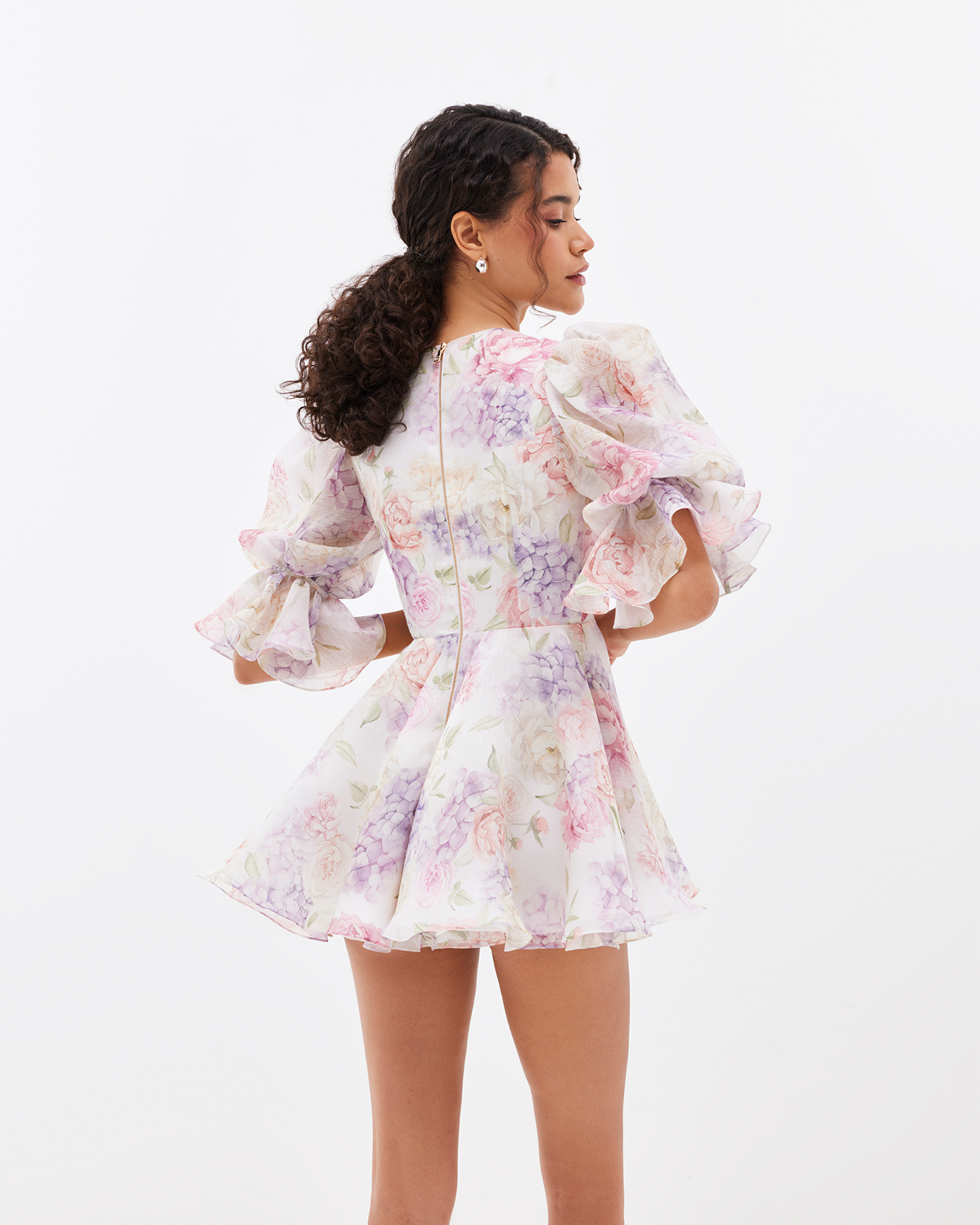 Structured corset bodice with boning provides shape and support, while the off-shoulder neckline and layered ruffle detail add a touch of flirtation. The multi-tiered ruffle skirt offers sculptural volume, ensuring you stand out effortlessly.