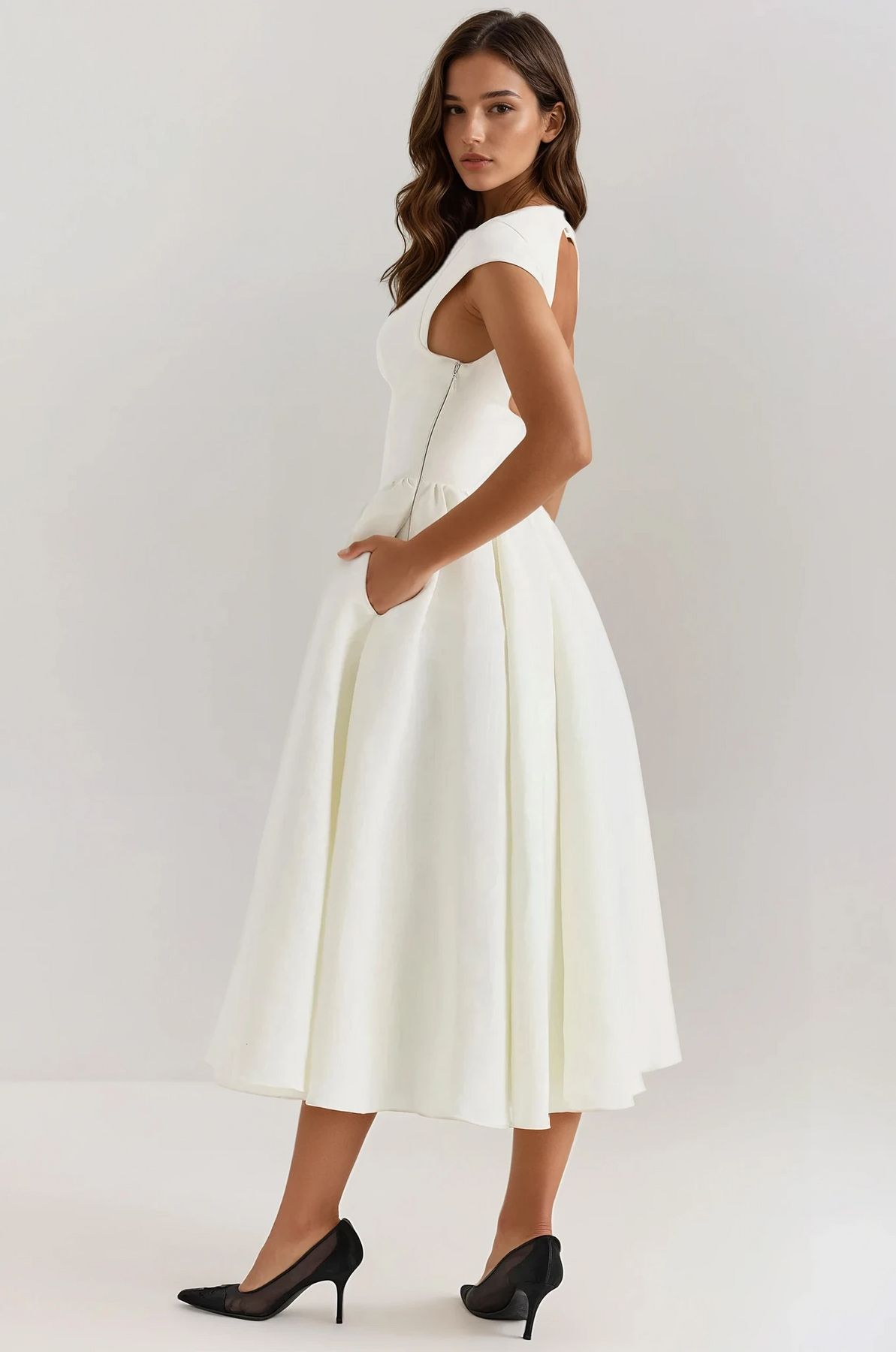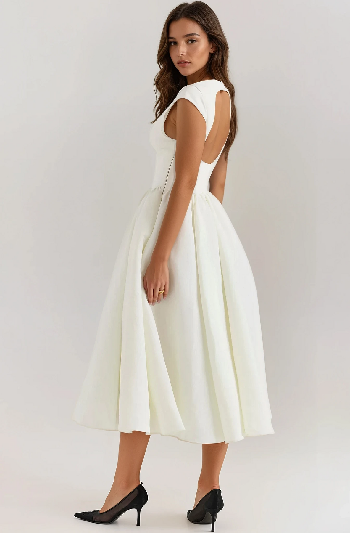 Backless Pleated Midi Dress - Evangeline