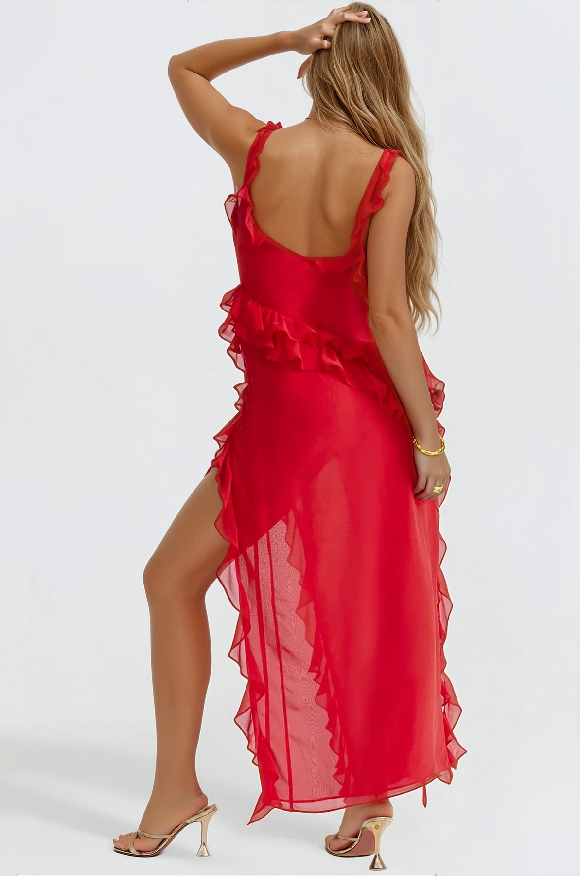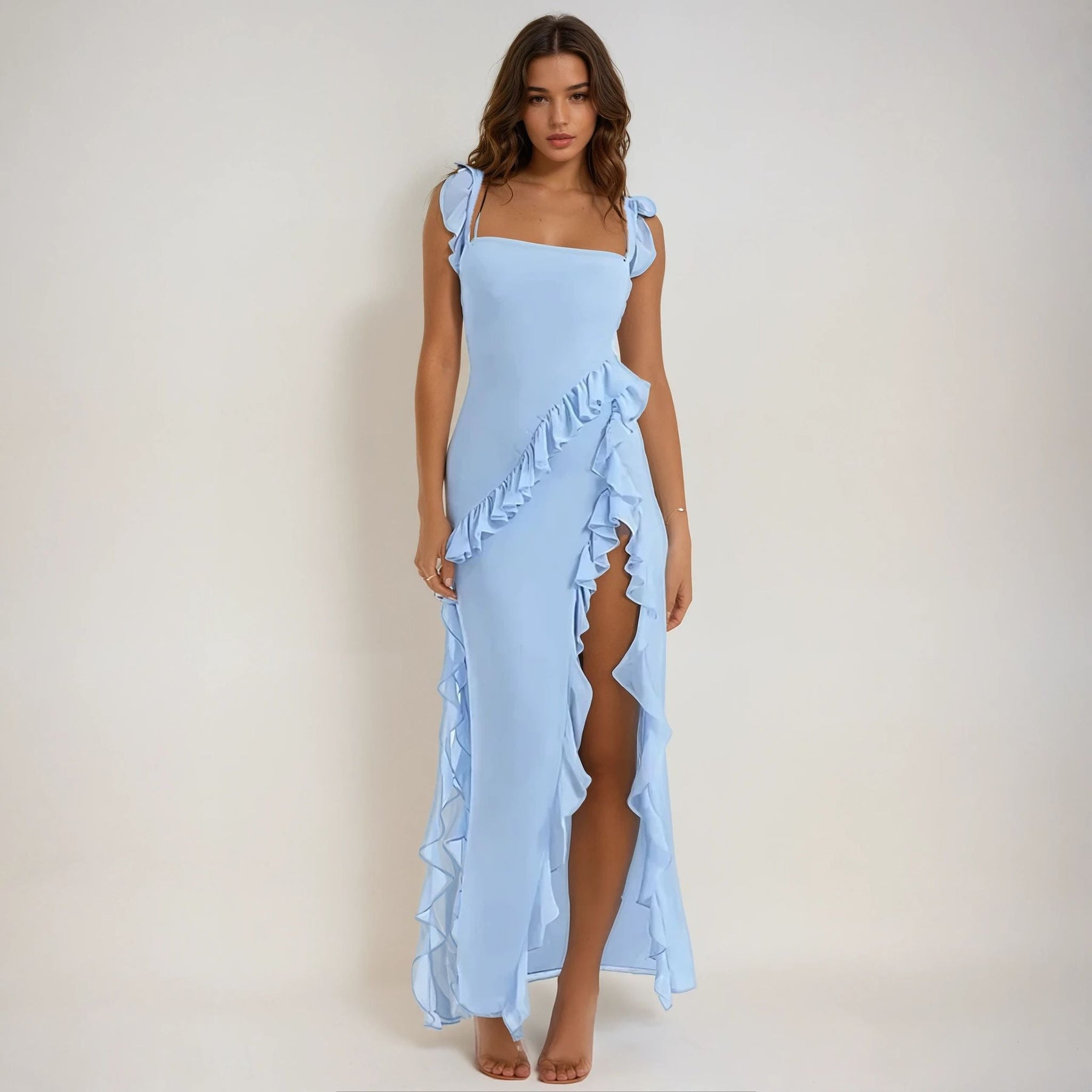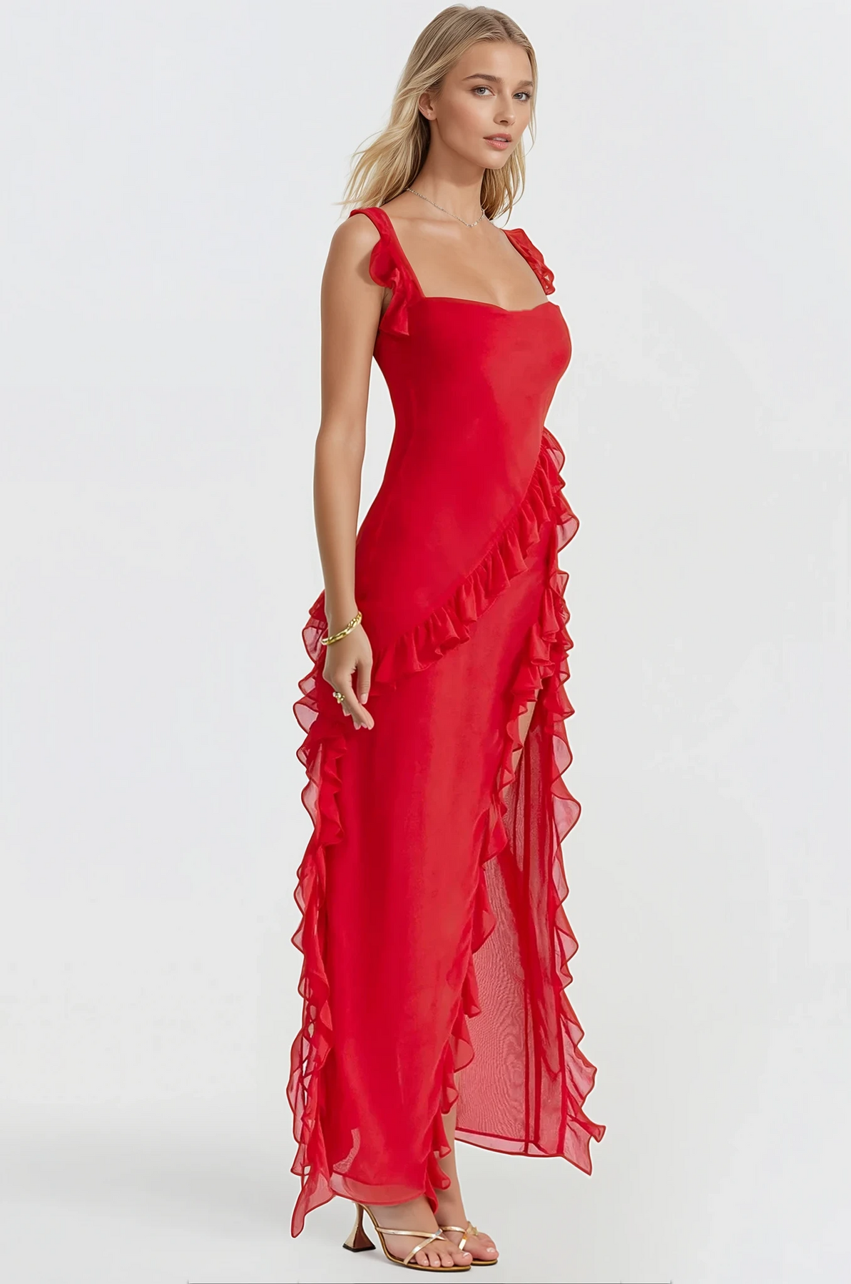 Elevate your style with the Mia Ruffled Maxi Dress — where romance meets modern sophistication.