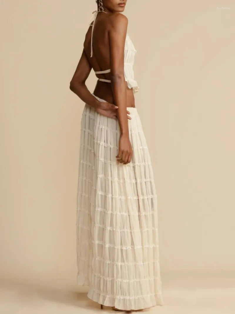 Crafted from premium polyester and cotton, this set features a flattering high-waisted maxi skirt that elongates your legs and accentuates your curves. The luxuriously soft fabric drapes beautifully, allowing for effortless movement, while the daring thigh-high slit adds a touch of sensuality.